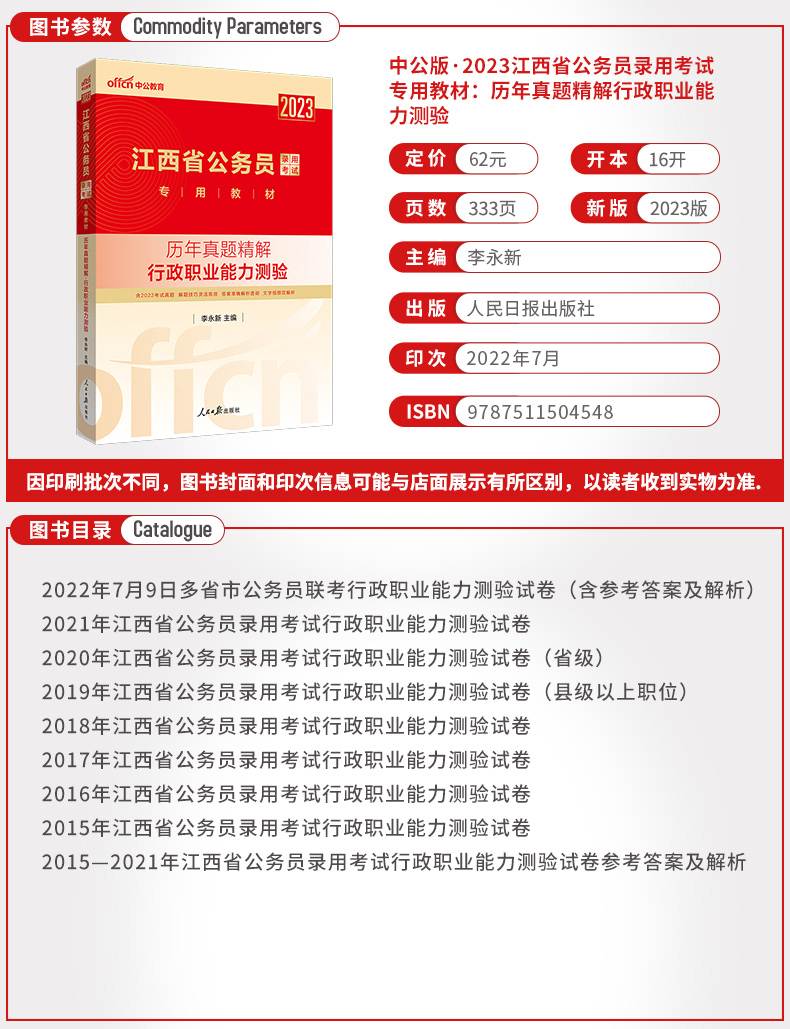2023江西省公务员录用考试专用教材:历年真·题精解-行政职业能力测验