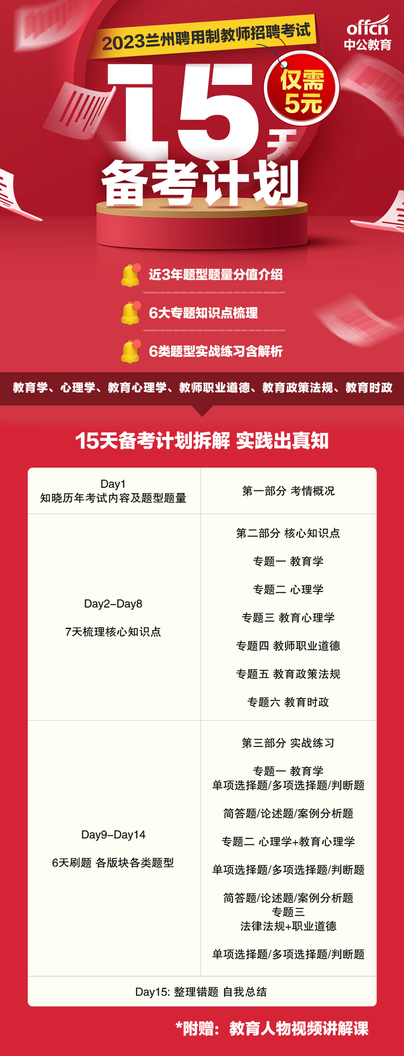 2023年甘肃兰州聘用制教师招聘15天备考计划