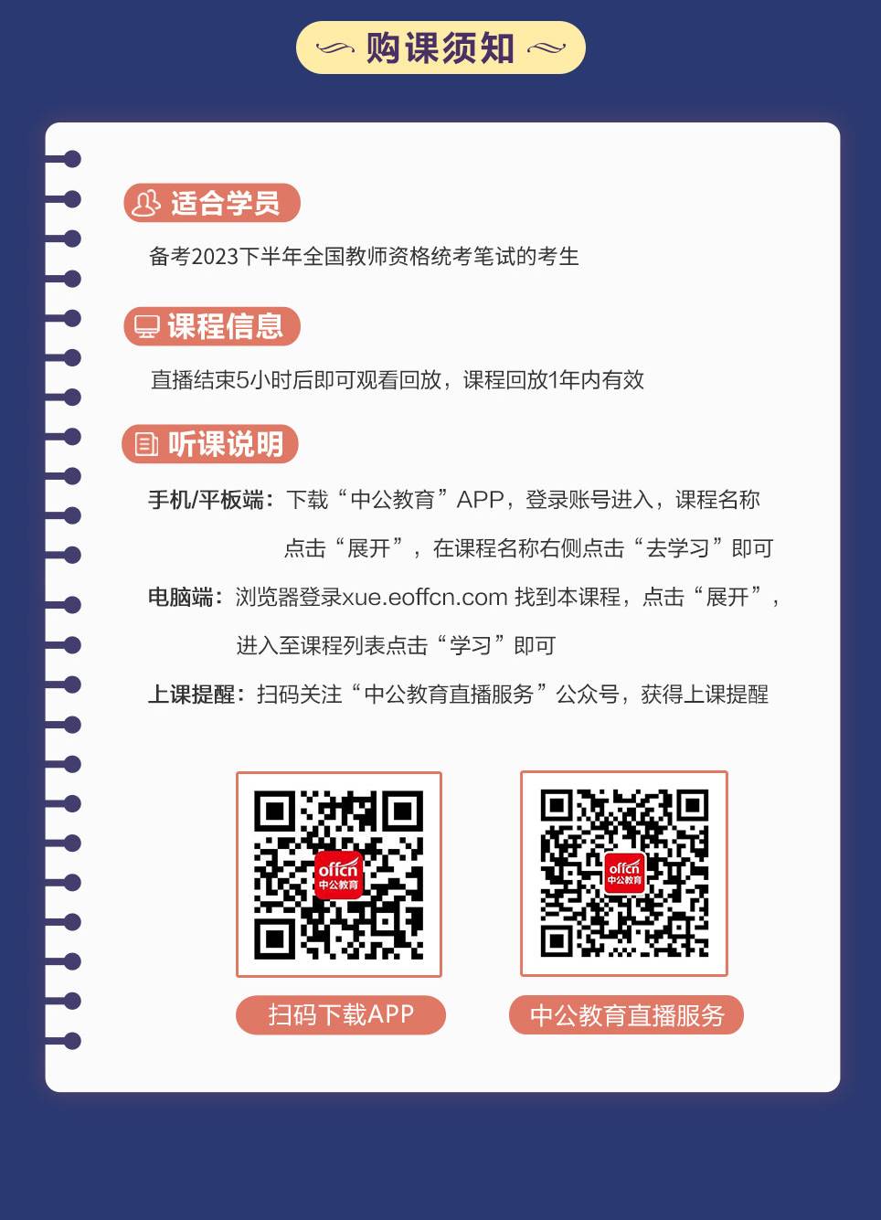 微信扫描右侧二维码关注“中公教育直播服务”公众号,绑定听课手机号后即可接收直播提醒