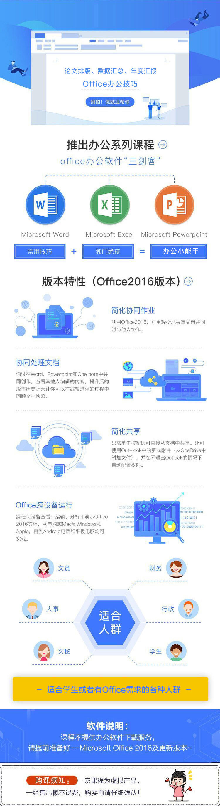 论文排版,会议纪要,流程梳理,对于word基础操作不甚了解,怎么办?本套Word2016教程介绍了Word2016软件安装、基础操作、文档基础排版、图文混排、表格编辑、长文档的编辑和排版、打印、综合案例及办公各个阶段经常遇到的问题