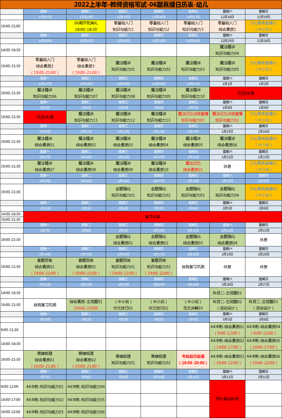 主观题训练:(1节/3h)综合素质主观题训练直播+(1节/2.5h)科目二主观题训练直播+(2节/5h)活动设计直播(6大技能专项讲解)