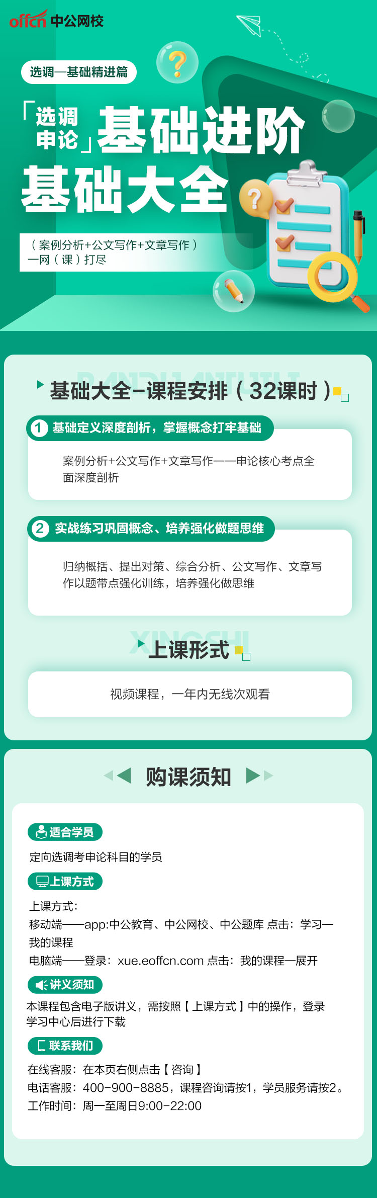 工作时间:课程咨询请按1(9:00-22:00),学员服务请按2(9:00-21:00),节假日不休